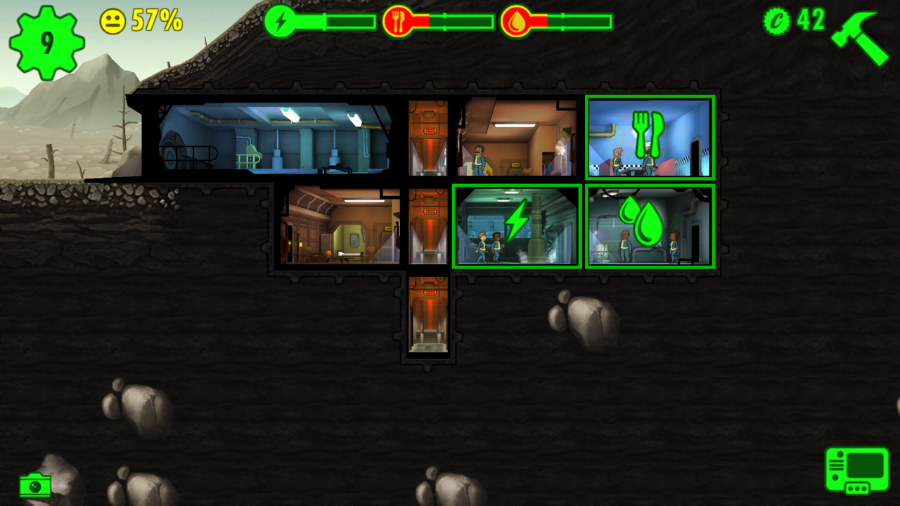 Fallout Shelter est un jeu de construction et de simulation de vie créé par Bethesda Softworks. Votre objectif est de bâtir et faire évoluer un abri anti-atomique dans l’univers post-apocalyptique de Fallout. Vous devrez accueillir et gérer le plus grand nombre possible de personnes. La gestion se fait par salle et par habitant. Il faudra réussir à créer une synergie entre vos habitants afin qu’ils accomplissent certaines tâches vous permettant de récupérer les ressources nécessaires et de faire tourner au mieux votre abri. Le jeu est disponible gratuitement sur iPhone, iPad et sur sur appareil Android. Des achats in app sont possibles afin d’accélérer et de vous faciliter la gestion de votre abri.