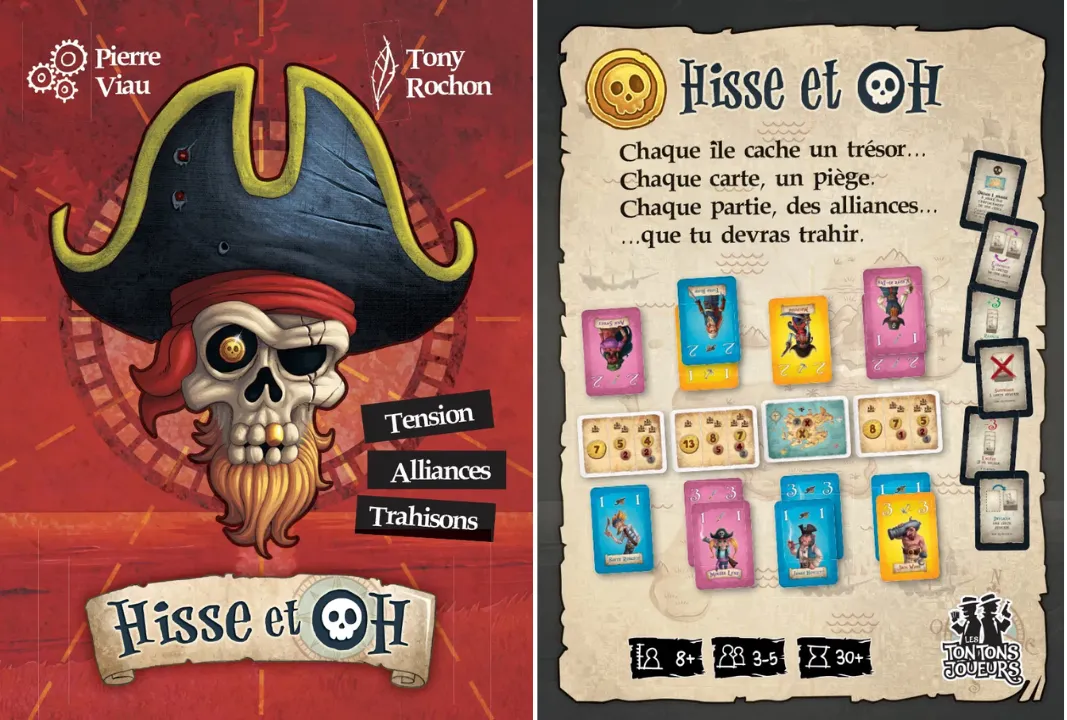 Hisse et Oh est un jeu de majorité, d’alliances et de trahisons imaginé par Pierre Viau, illustré par Tony Rochon et édité par Les Tontons Joueurs. Il se joue de 3 à 5 joueurs, dès 8 ans, pour des parties d’environ 30 minutes. Cette présentation est basée sur une version offerte par l’éditeur.