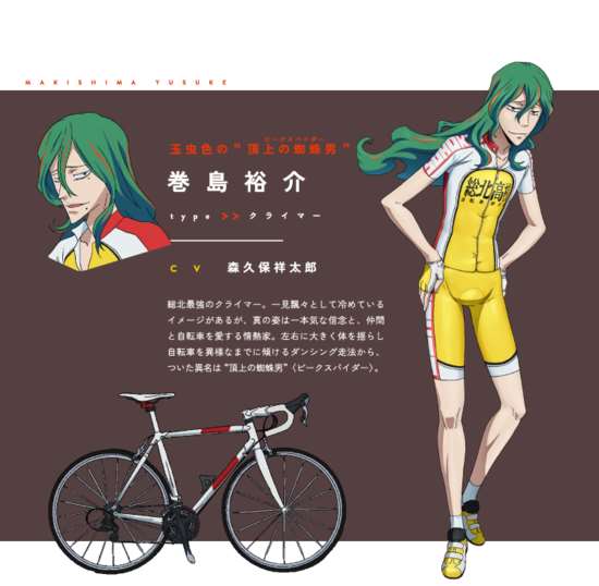 • Yūsuke Makishima, un troisième année et grimpeur principal de l’équipe. C’est lui qui va plus particulièrement former Sakamishi.